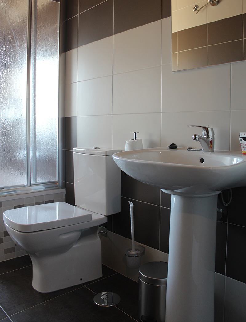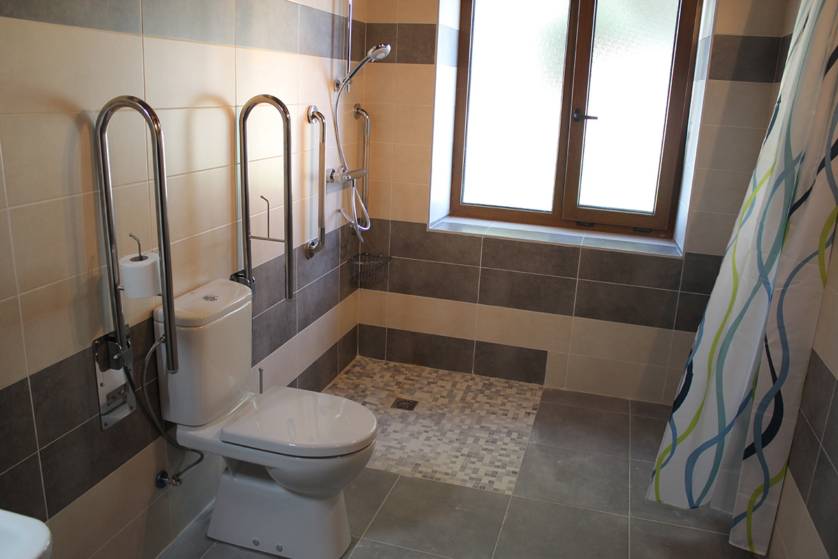 Una casa de 300 M2 en una sola planta sin escalones, distribuidos en un amplio salón – cocina de 80 M2 y 8 habitaciones dobles, 8 baños y 1 aseo, de los cuales 6 están dentro de 6 de las habitaciones. Una de las habitaciones y uno de los baños son accesibles para personas con movilidad reducida.