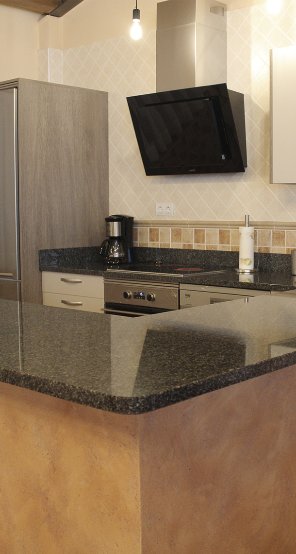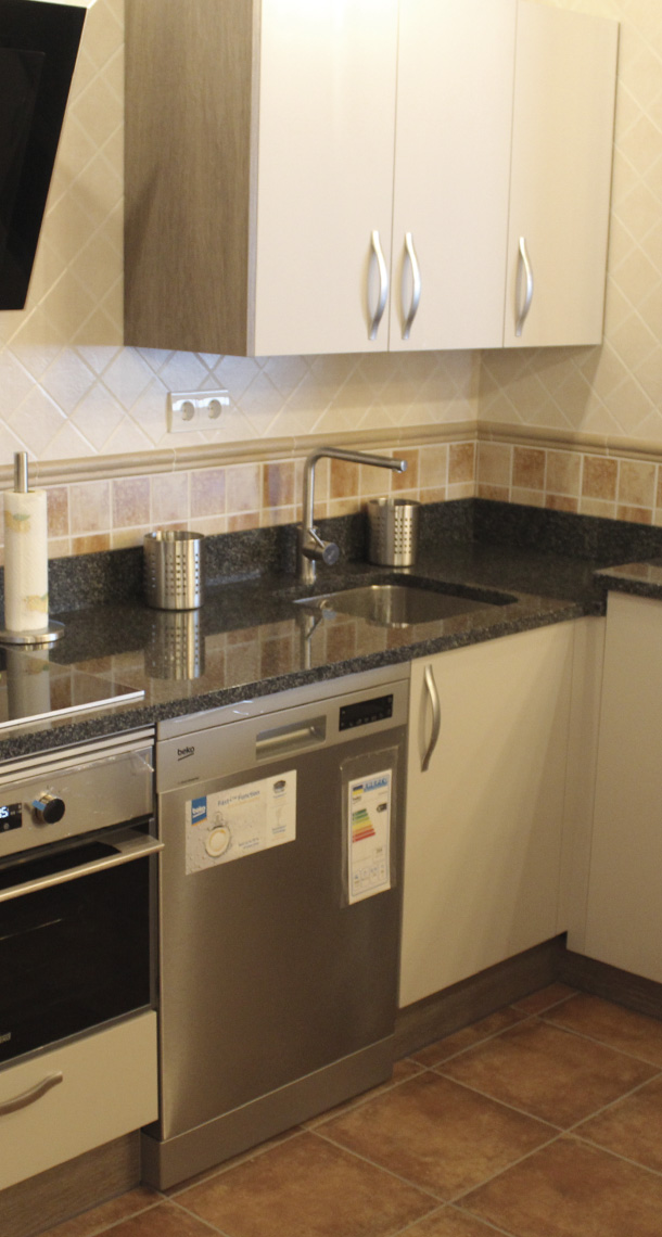 Cocina totalmente equipada con lavavajillas horno vitro microondas, menaje de cocina y pequeño electrodoméstico como cafetera y batidora.